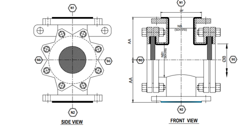 - Flanges: Material as Per IS 2062 GR B /ASTM A105 Dimensions As per ASME B16.5 #150. JIS or DIN Std Options available
